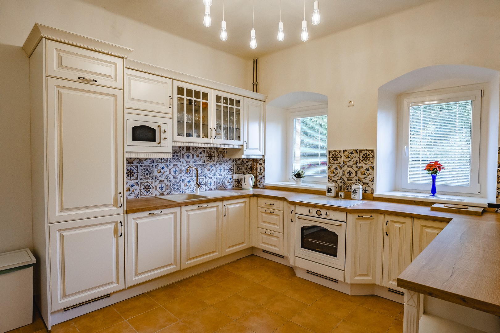 Naše nová rustikální plně vybavená kuchyně nabízí veškeré vybavení, jako je lednička, mrazák, myčka na nádobí, trouba, mikrovlnná trouba, indukční plotýnka, kávovar na mletou kávu, toustovač, topinkovač, varná konvice a jiné. Tato kuchyně je připravena splnit všechny vaše kulinářské sny a poskytne vám ideální prostor k přípravě chutných pokrmů a nezapomenutelných domácích večeří.
